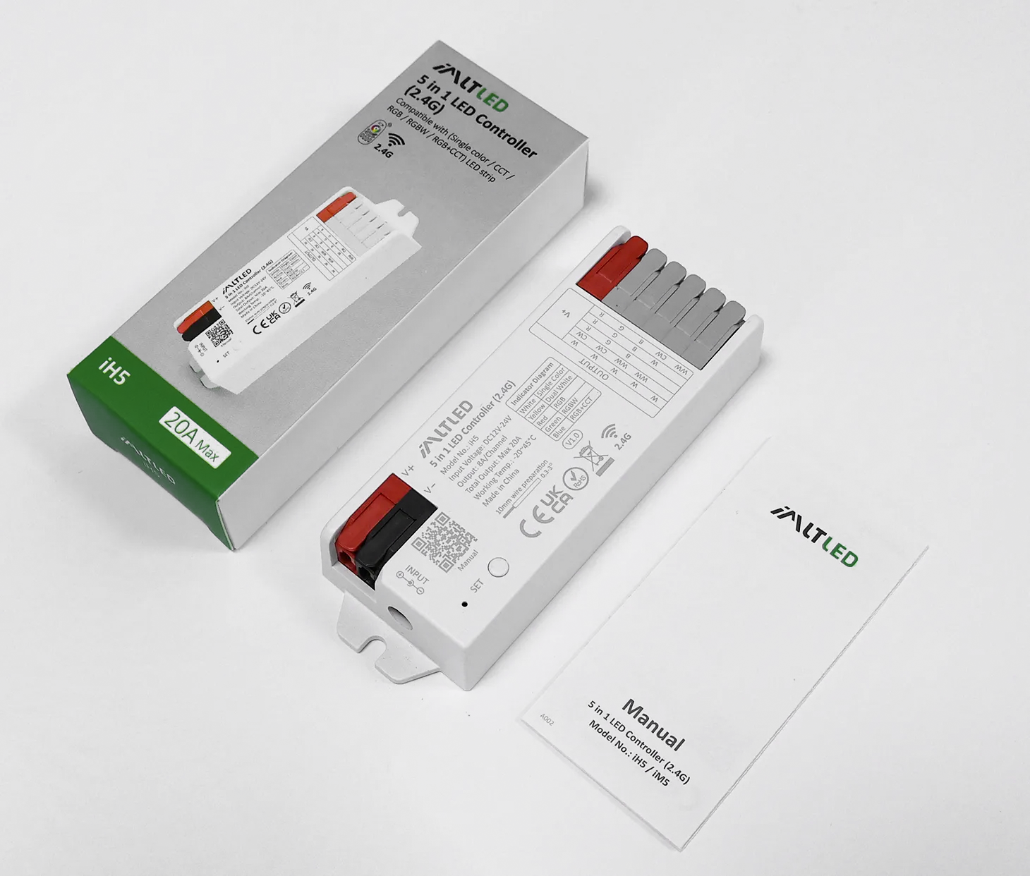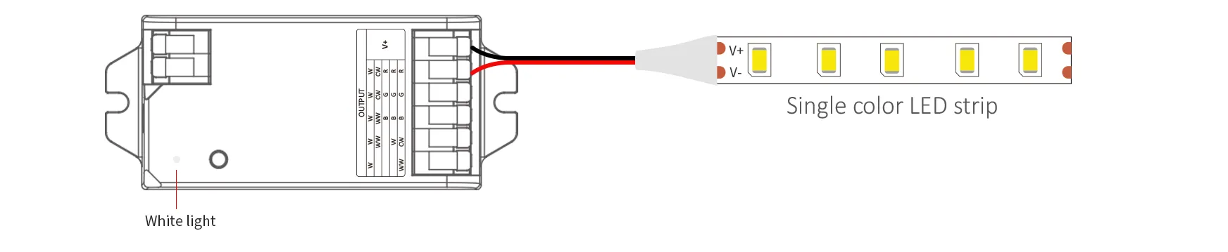 • Compatible with 5 types of LED light strips (Single Color / Double White / RGB / RGBW / RGB+CCT)