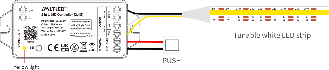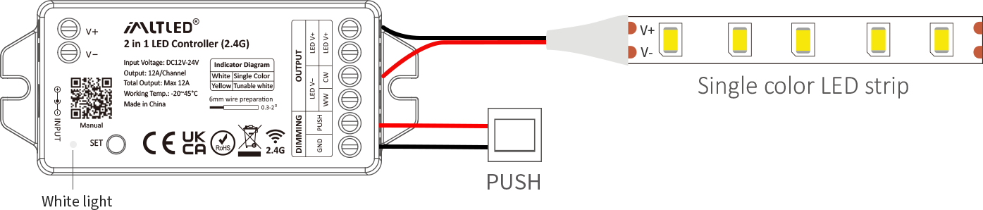 • Compatible with 5 types of LED light strips (Single Color / Double White / RGB / RGBW / RGB+CCT)
